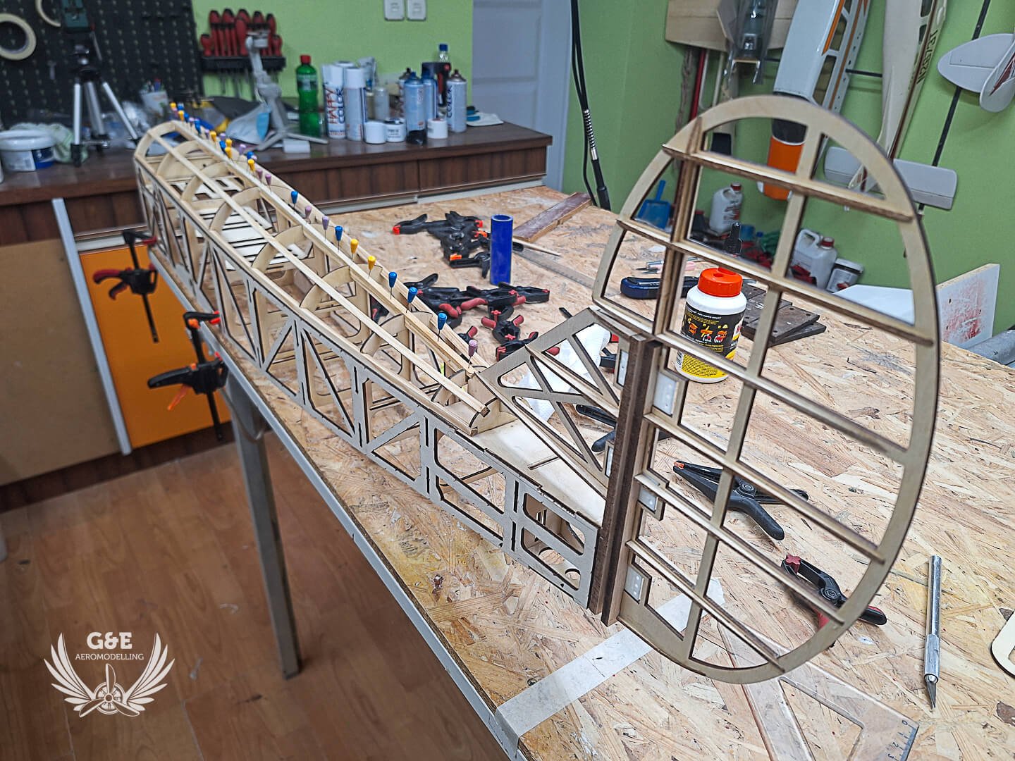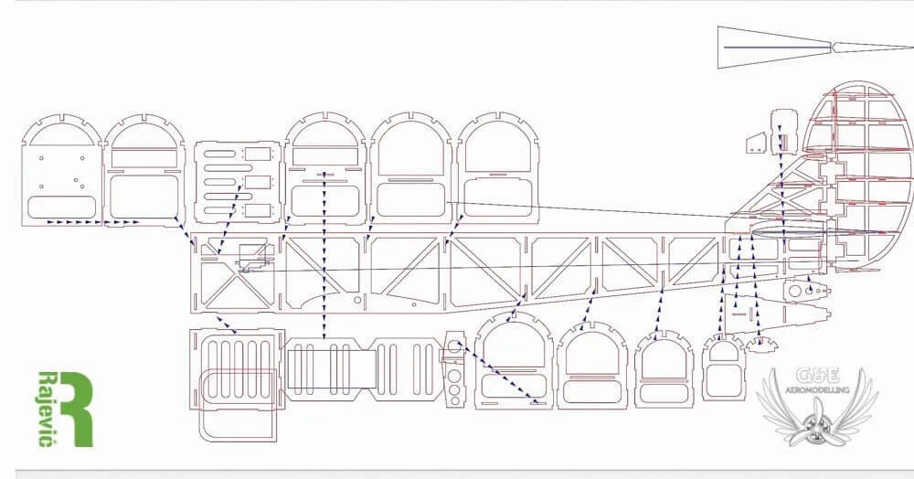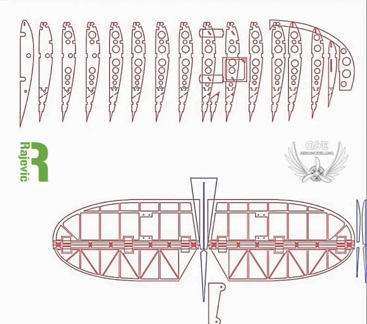 A törzs bordái rétegeltlapból lettek kivágva
