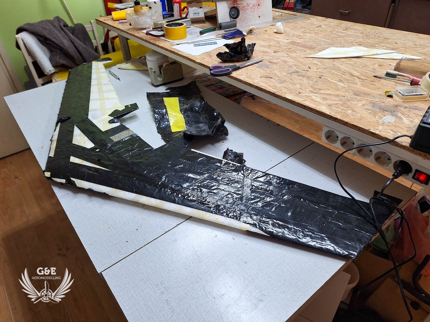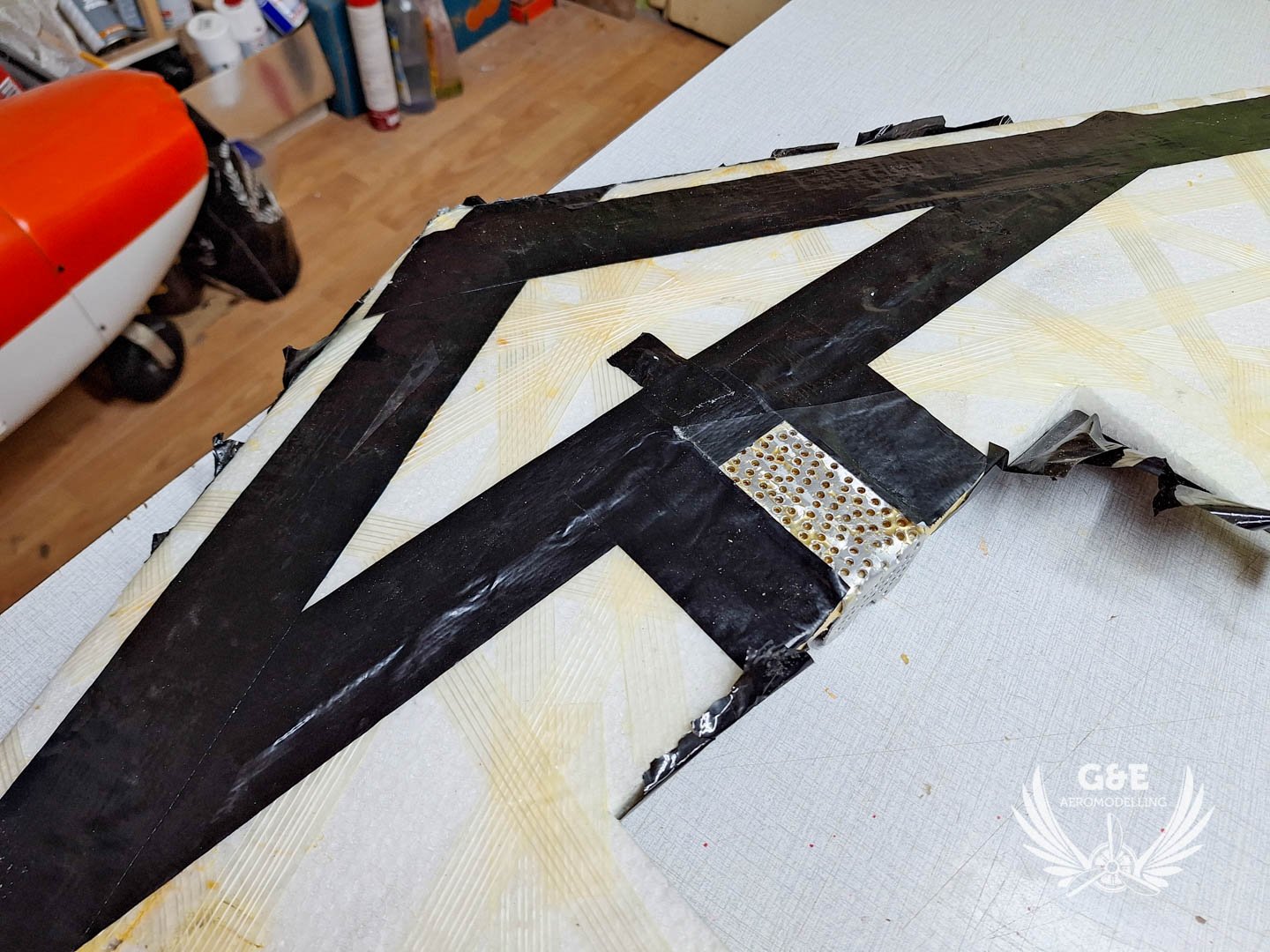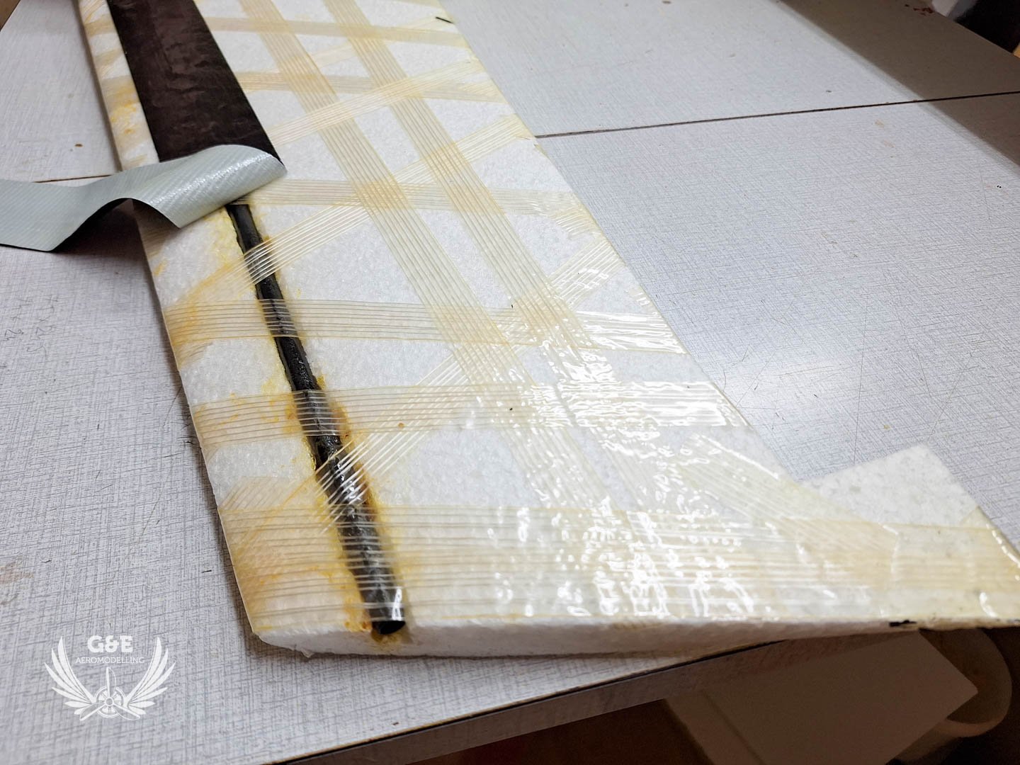 Magában a habanyag az rendben van, üvegszálas ragasztószalaggal van behálózva a felület, szénszálas merevitést is kapott a szárny illetve a középső rész is
