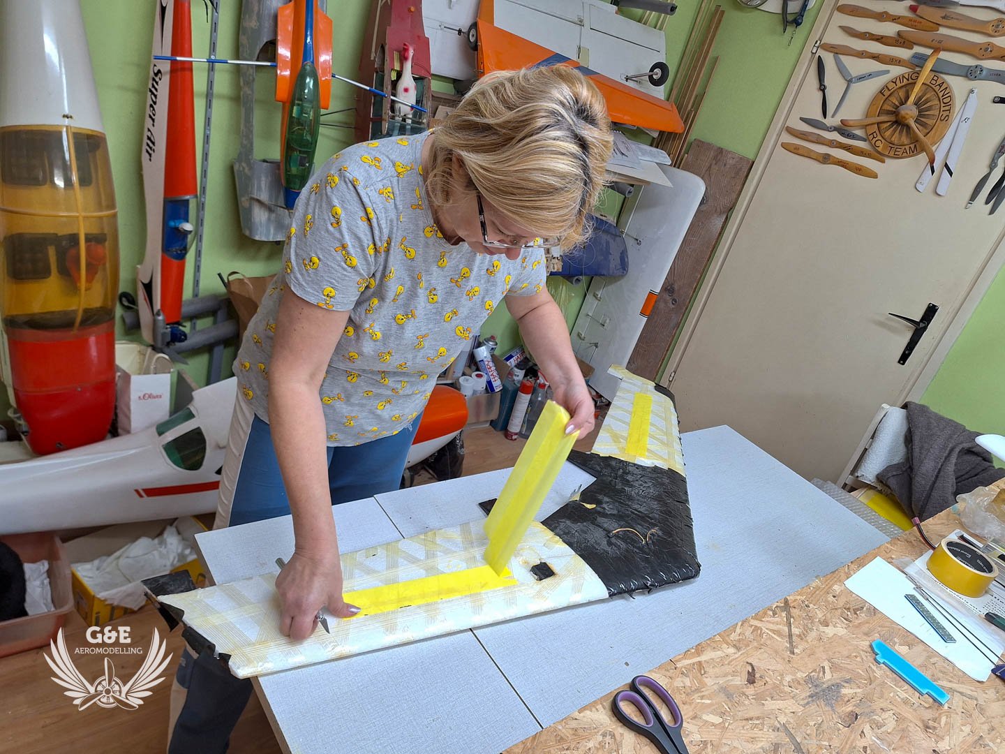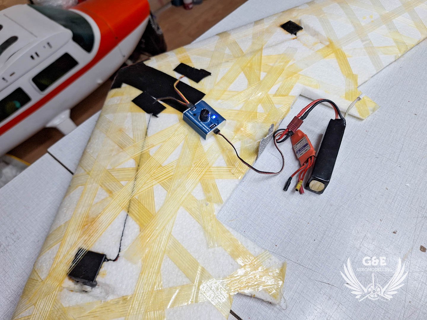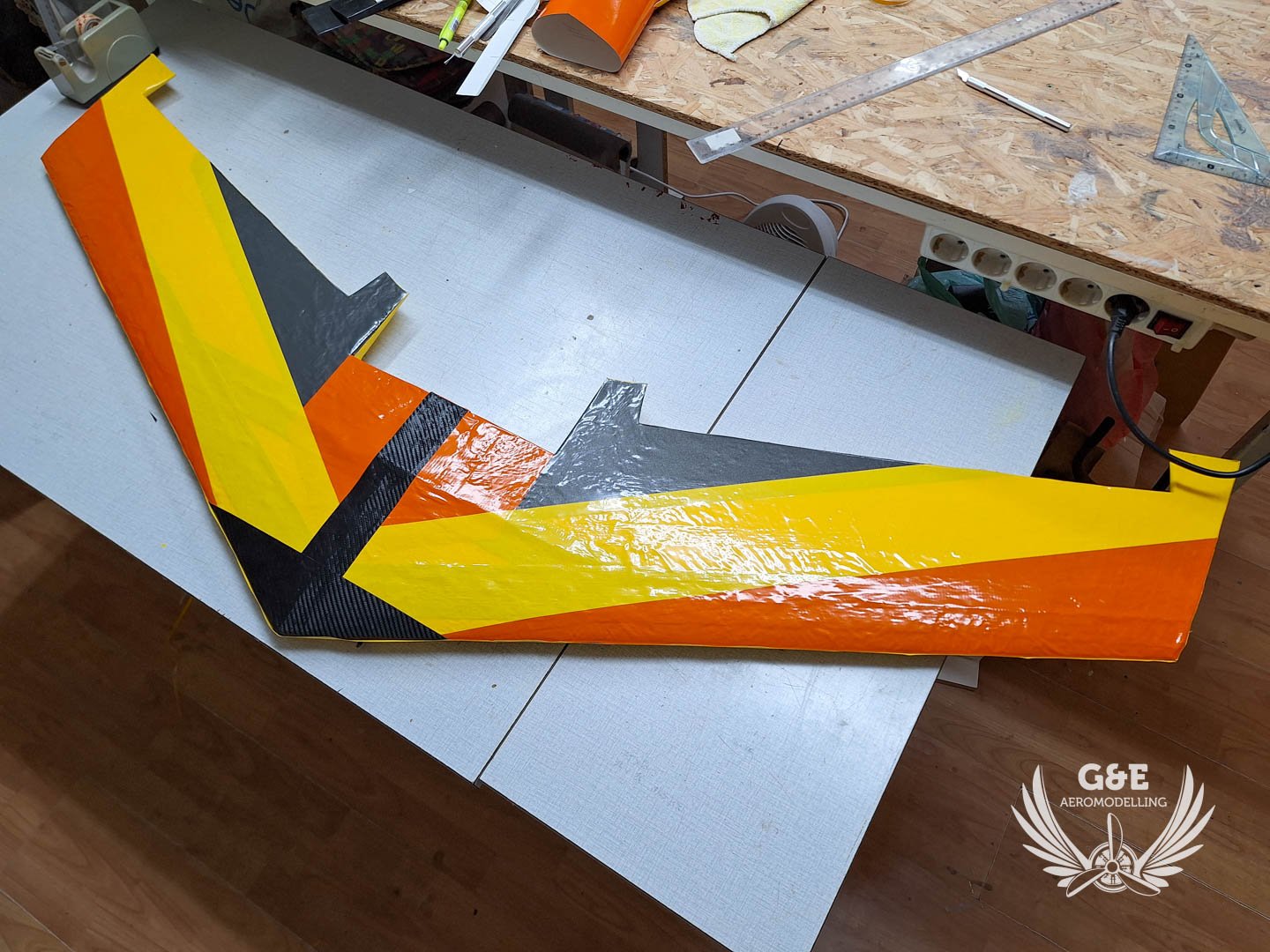 Magában a habanyag az rendben van, üvegszálas ragasztószalaggal van behálózva a felület, szénszálas merevitést is kapott a szárny illetve a középső rész is